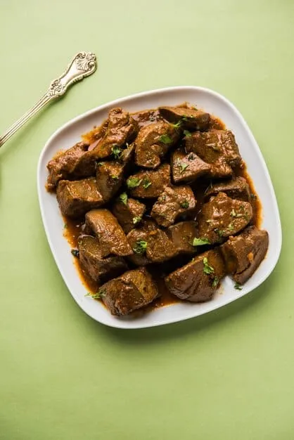 Spicy mutton liver fry or gravy.