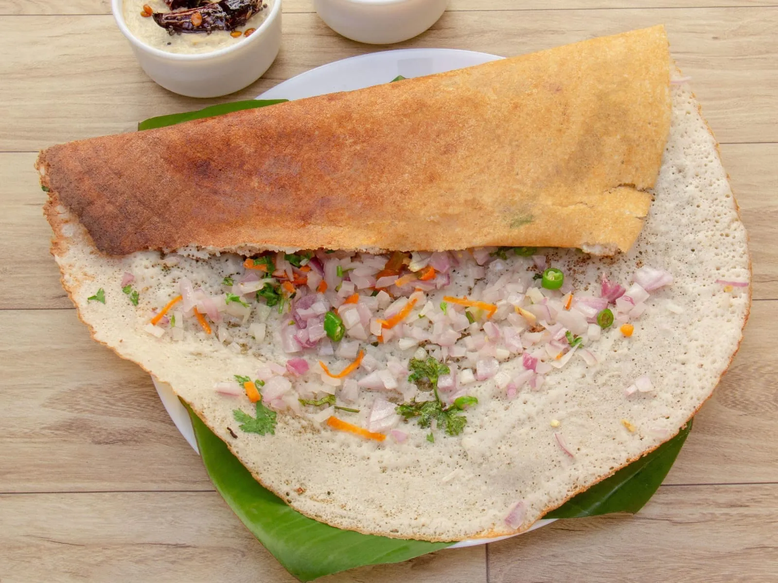 Crispy roast dosa with onions.