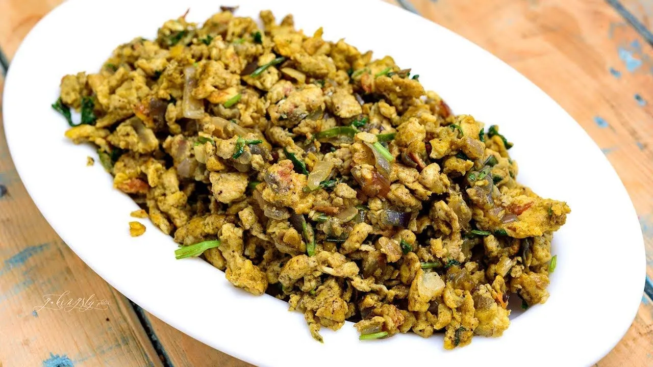 Beaten egg fried with spices.
